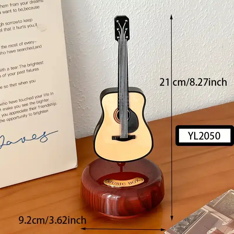 Offrez un cadeau qui touche le cœur avec cette boîte à musique guitare au design raffiné. Cette guitare miniature posée sur un socle en bois verni diffuse une mélodie douce et apaisante, parfaite pour créer une atmosphère chaleureuse à la maison ou au bureau.