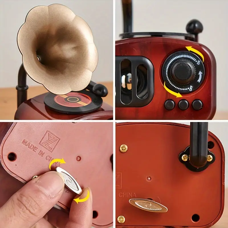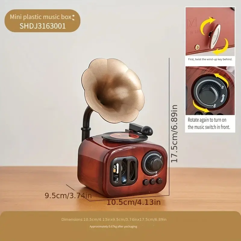 Offrez-vous un voyage dans le temps avec cette boîte à musique style phonographe vintage. Inspirée des gramophones classiques, elle allie élégance rétro et charme intemporel.