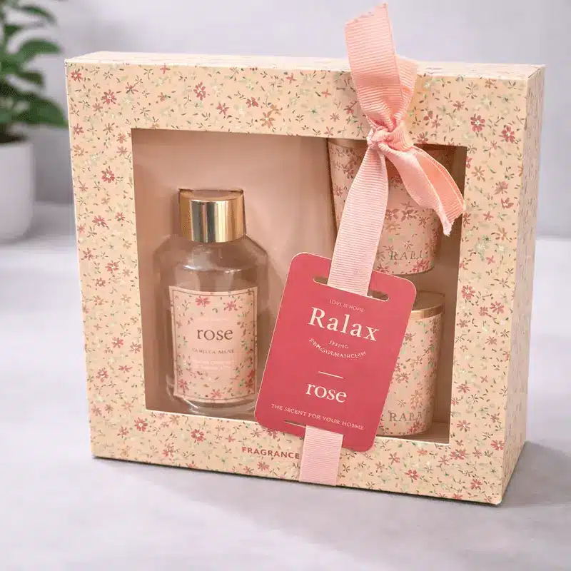 Coffret cadeau bougies parfumées et parfum d’intérieur – Rose