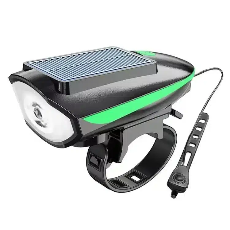 Lampe vélo solaire LED rechargeable avec klaxon – Vert