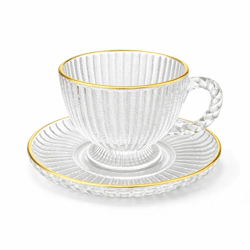 • Design élégant et intemporel : verre texturé avec bordure dorée.