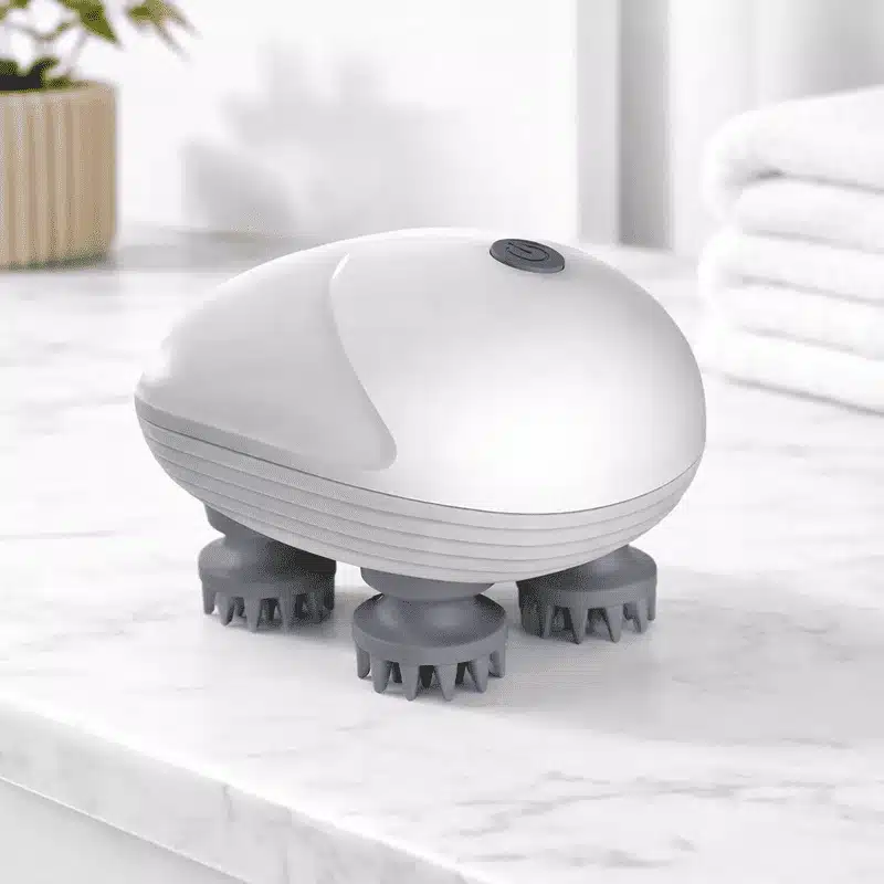 Disponible en plusieurs couleurs tendance (rose, vert, blanc), ce masseur crânien électrique trouve facilement sa place sur une étagère de salle de bain ou une table de chevet. Son bouton unique permet une mise en marche très simple : tu appuies, il démarre, et tu profites de ton massage.