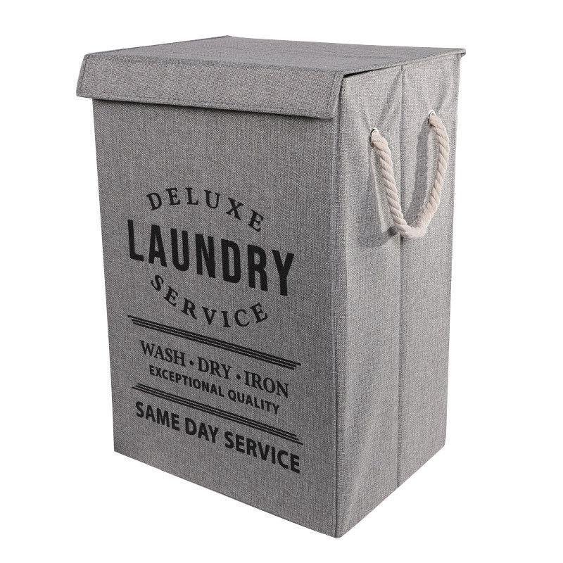 Panier à linge pliable avec couvercle et poignées en corde style vintage – Gris