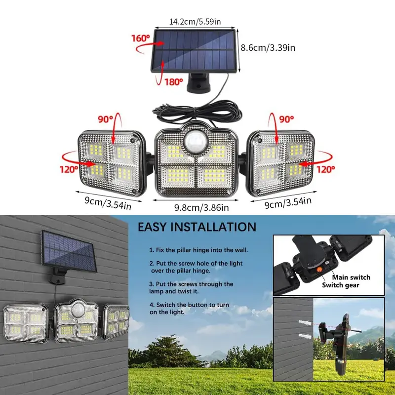 Avantages de ce projecteur solaire extérieur 3 têtes :
