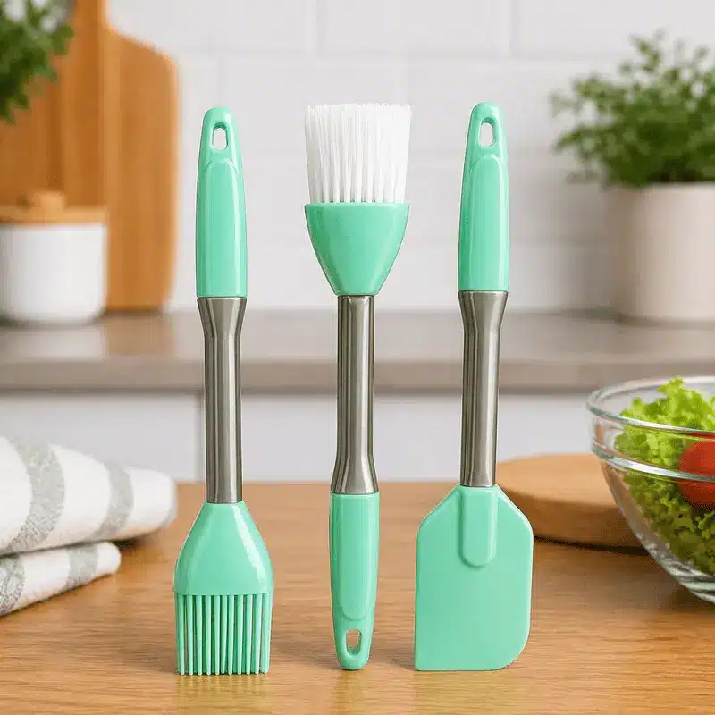 Transforme ta cuisine avec ce set ustensiles cuisine en silicone ultra pratique et indispensable ! Composé d’un pinceau, d’une brosse de nettoyage et d’une spatule, ce kit est parfait pour la pâtisserie, la cuisson et l’entretien quotidien.
